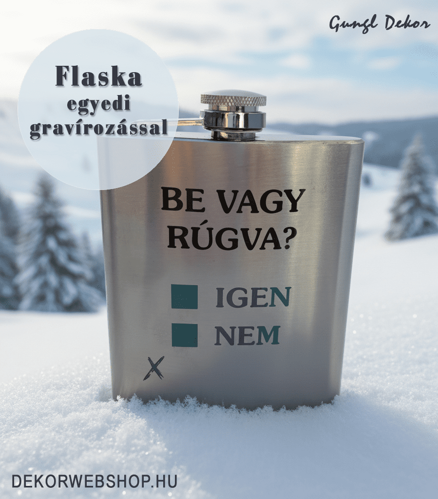Gravírozott flaska, laposüveg egyedi szöveggel, mintával